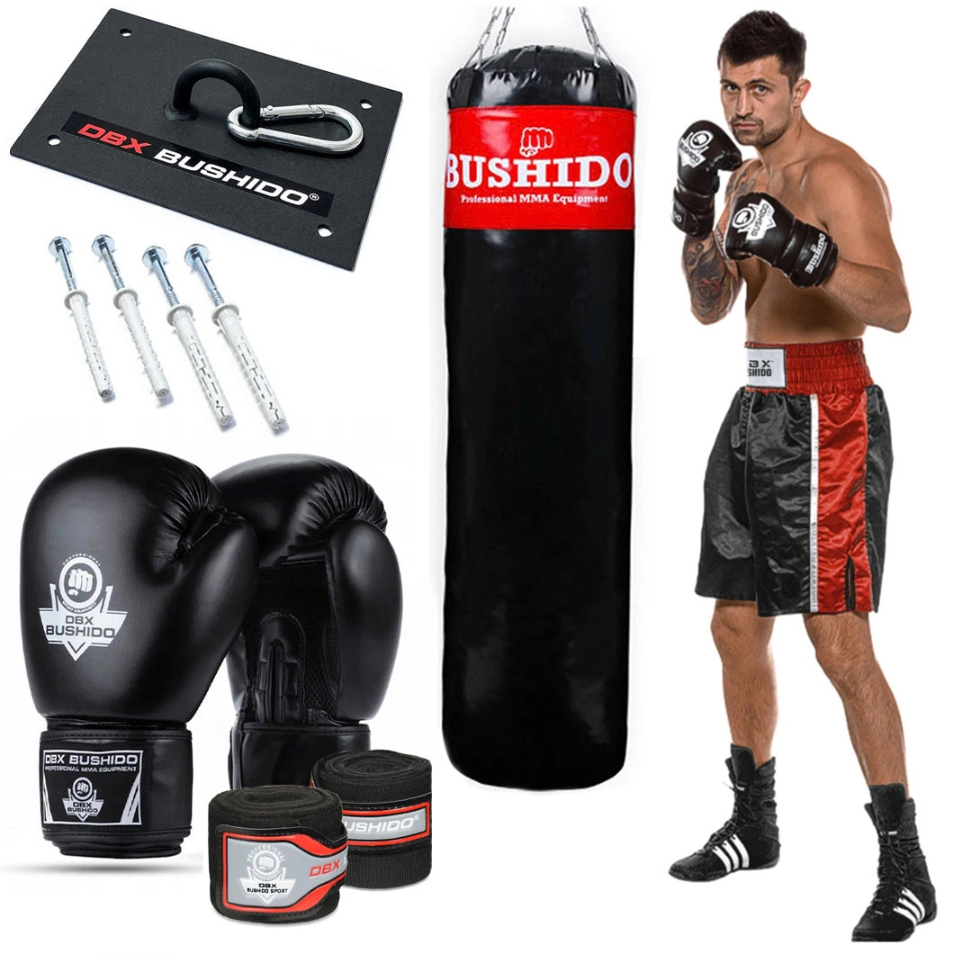 • The boxing set includes: A 150 cm punching bag and a weight of approximately 50 kg. Assembly kit. Training gloves. Boxing wraps. Keychain.